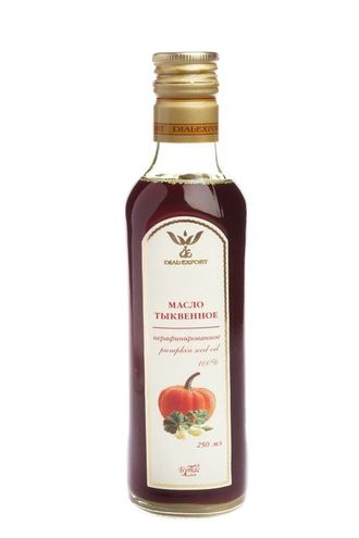 Произведено из тыквенных семечек, обладает изысканными вкусом и ароматом. Содержит большое количество биологиески активных веществ, витамины В1, В2, С, Р, ненасыщенные и полиненасыщенные жирные кислоты - линоленовую, линолевую, пальмитиновую, стеариновую. Нагревать не рекомендуется!