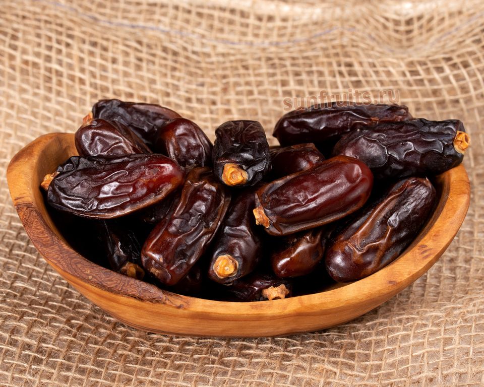 Довольно сухая, "долгоиграющая" мякоть постепенно раскрывает все оттенки вкуса этих великолепных фиников...