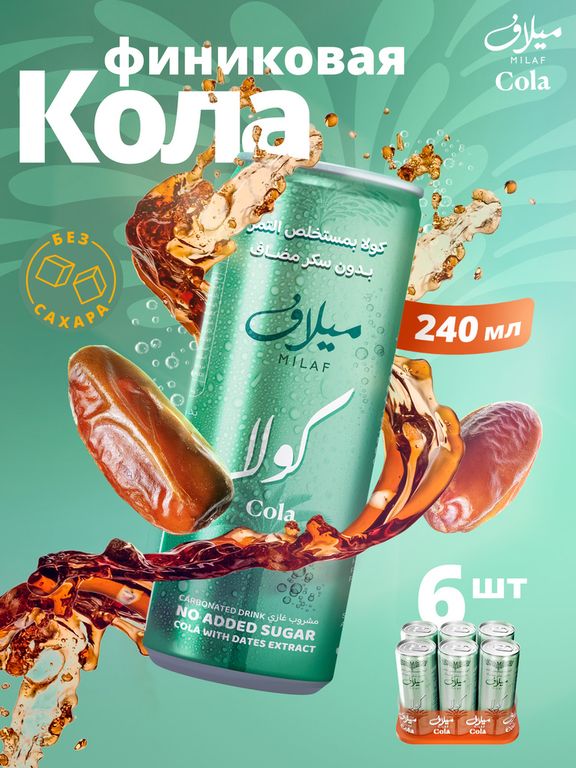 Газированная вода, натуральный экстракт фиников, карамельный краситель (E150-D), регулятор кислотности (ортофосфорная кислота E338, лимонная кислота (E330)), кофеин, консервант бензоат натрия (E211), ароматизаторы колы (натуральные и идентичные натуральным), стабилизатор камедь акации (Е414)